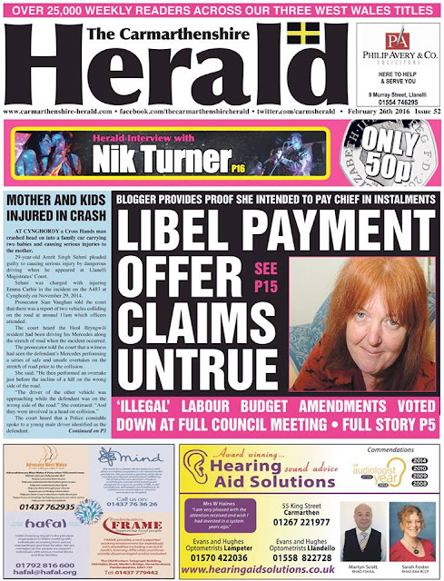 Further to my previous post, 'Carmarthenshire Council to pursue me for £190,390 libel costs', and as I ponder just what their 'opening dialogue' with me could possibly be, the Carmarthenshire Herald has dug deeper into the curious manner in which I learned of the decision.